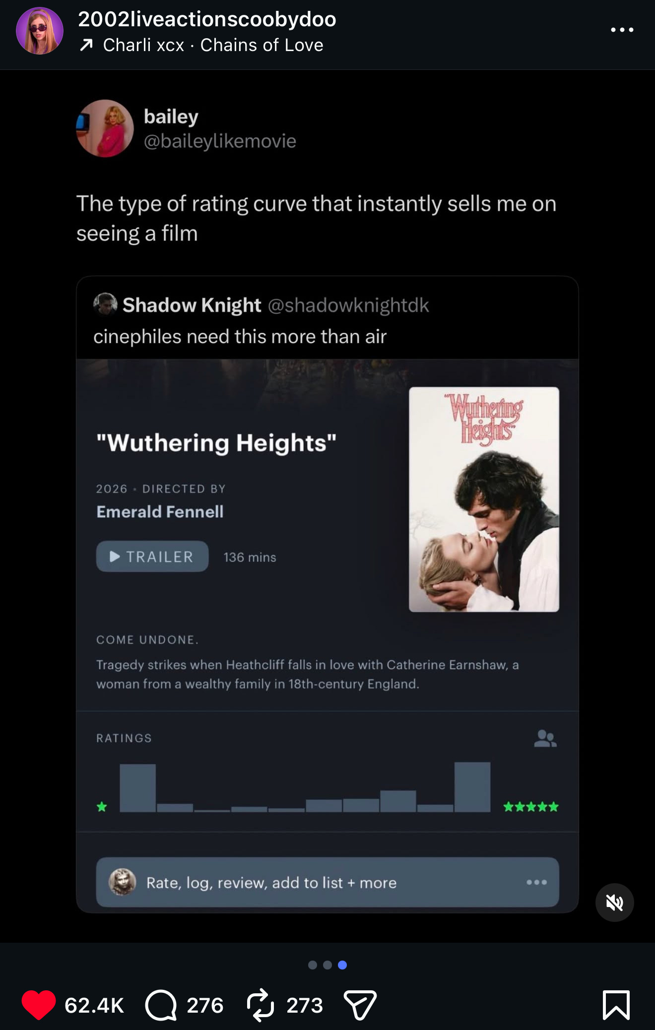 Six out of seven English adaptations cast Heathcliff as white, disregarding his racial ambiguity in the source material. Elordi, who is also white, drew rapid social media backlash, dominating online discussion. Few positive social media reviews remain untouched by hate comments targeting ‘whitewashing’ or ‘unfaithful’ casting. Initial polarising 1- and 5-star Letterboxd reviews soon averaged out to three stars.